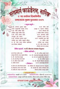 सत्य मार्ग फाउंडेशन 2 ऱ्या वर्धापन दिनानिमित्त समाजरत्न भूषण पुरस्कार 2025 हा सामाजिक क्षेत्र आणि शैक्षणिक तसेच राजकीय साहित्यिक अशा विविध क्षेत्रातील मान्यवरांचा सत्कार करण्यात येणार आहे